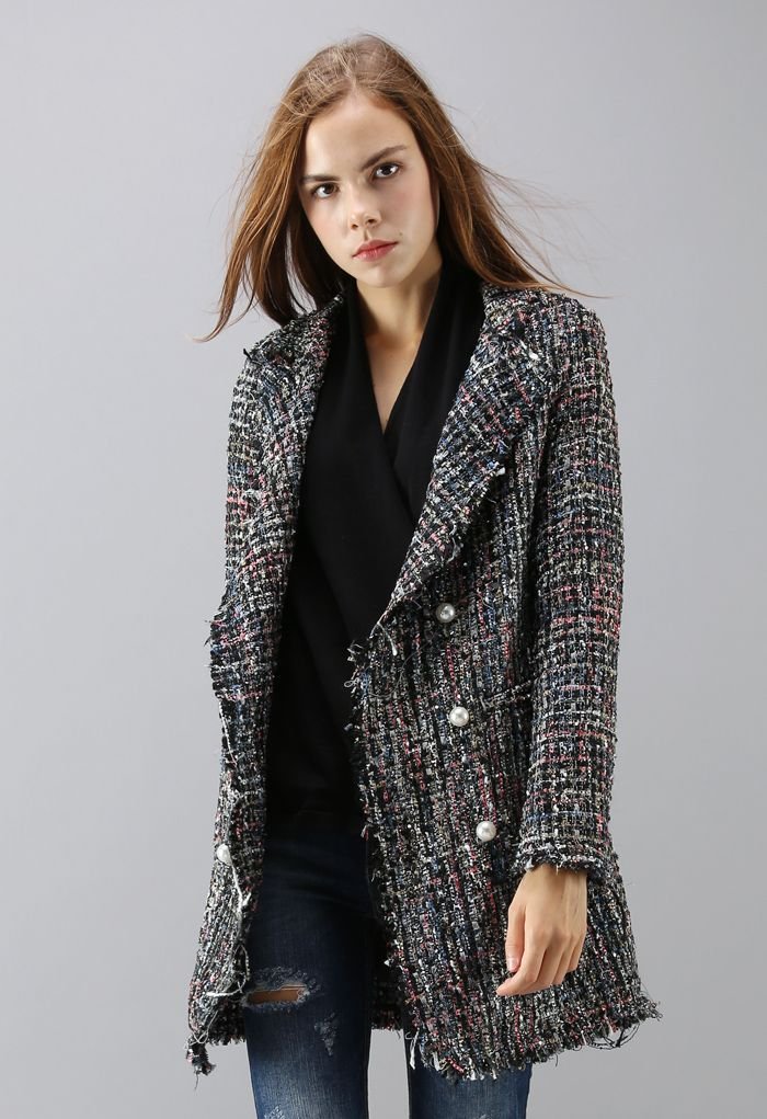 5. Double-Breasted Tweed Jacket Outerwear, $45.90