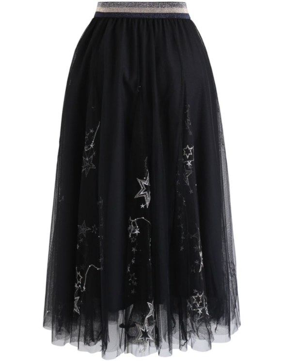 3. Sequined Embroidered Mesh Tulle Skirt, $50