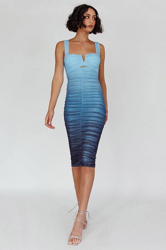 Nelly Printed Gathered Mesh Midi Dress